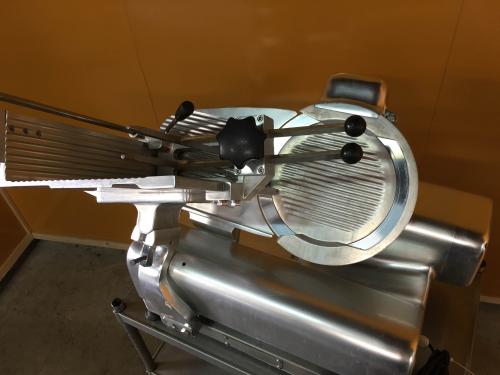 | コメント | ・電源:100V 50/60Hz ・スライス厚み:(0)~16mm ・スライス可能寸法:幅240x高160x長 420mm ・スライス適応温度 冷凍~冷蔵 肉厚、肉質、形状によって若干異なり ます。 ・丸刃直径:Φ300mm ・機械重量:52kg |