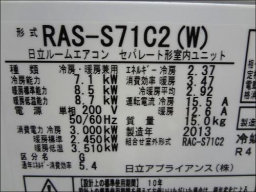 | 商品名 | 美品!’13年製 日立 ステンレス・クリーン RAS-S71C2 23畳用 単相200V |