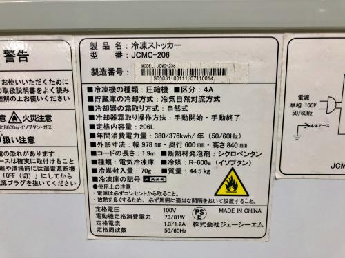 | 商品名 | 2014年 JCM 冷凍ストッカー JCMC-206 チェストタイプ 容量206L |