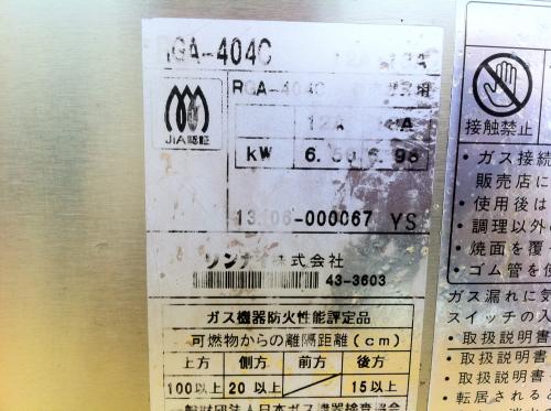 | 商品名 | ■激安■2013年リンナイ ガス赤外線グリラー”荒磯4号” RGA404C |