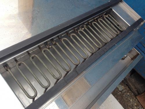 | コメント | ■動作確認済み ■年式不明ですが2014年製以降と思われます。 使用回数数回の美品です。 【メーカー】ヒゴグリラー 【型 番】3P-204KC 【電 源】三相200V (50/60Hz) 【外形寸法】幅610×奥行410×高さ390(mm) 【火床寸法】前巾450×奥行110(mm) 【加熱方式】3面独立電熱式 【消費電力】4.5kW 【熱量調節】3段切換 【給排水装置】給水3/8、排水1 【付属品】鉄灸2本 【製品質量】79kg |