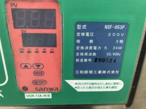 | 商品名 | 中古 三和厨理工業 電磁フライヤー NSF-053P 油量22L 200V |