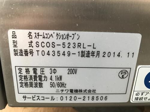 | 商品名 | 2014年 ニチワ 電気スチームコンベクションオーブン SCOS-523RL-L 200V |