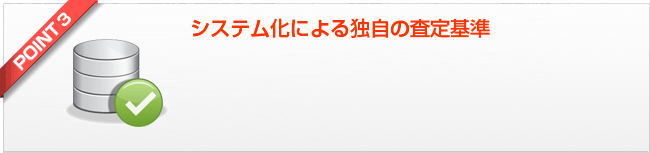 今まで培ってきたノウハウと蓄積されたデータベースを統合しシステム化することにより相場に縛られない独自の査定基準の算出を実現しました。