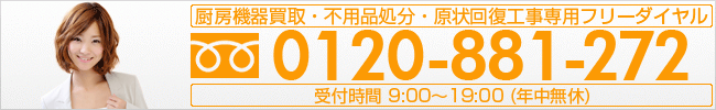 厨房機器買取・不用品処分・原状回復工事専用フリーダイヤル