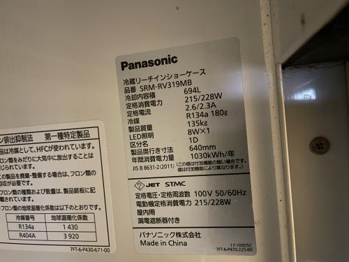| 商品名 | パナソニック リーチイン冷蔵ショーケース SRM-RV319MB |