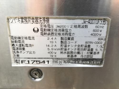 | 商品名 | 中古 ホシザキ 食器洗浄機 JW-400TUF3 50Hz 200V |